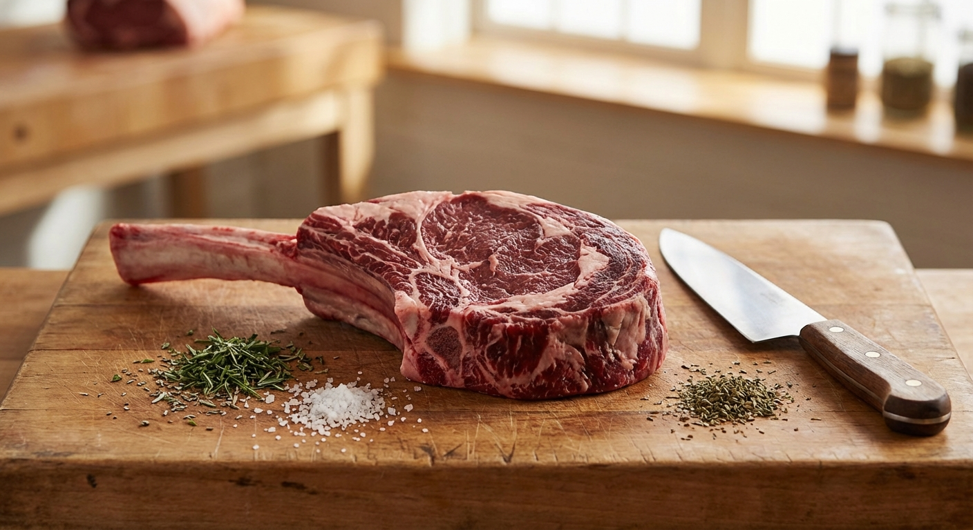 A tomahawk steak is a bone-in ribeye with a dramatically frenched rib bone handle. Fabricating one yourself from a bone-in rib primal saves money and gives you full control over thickness and trim.