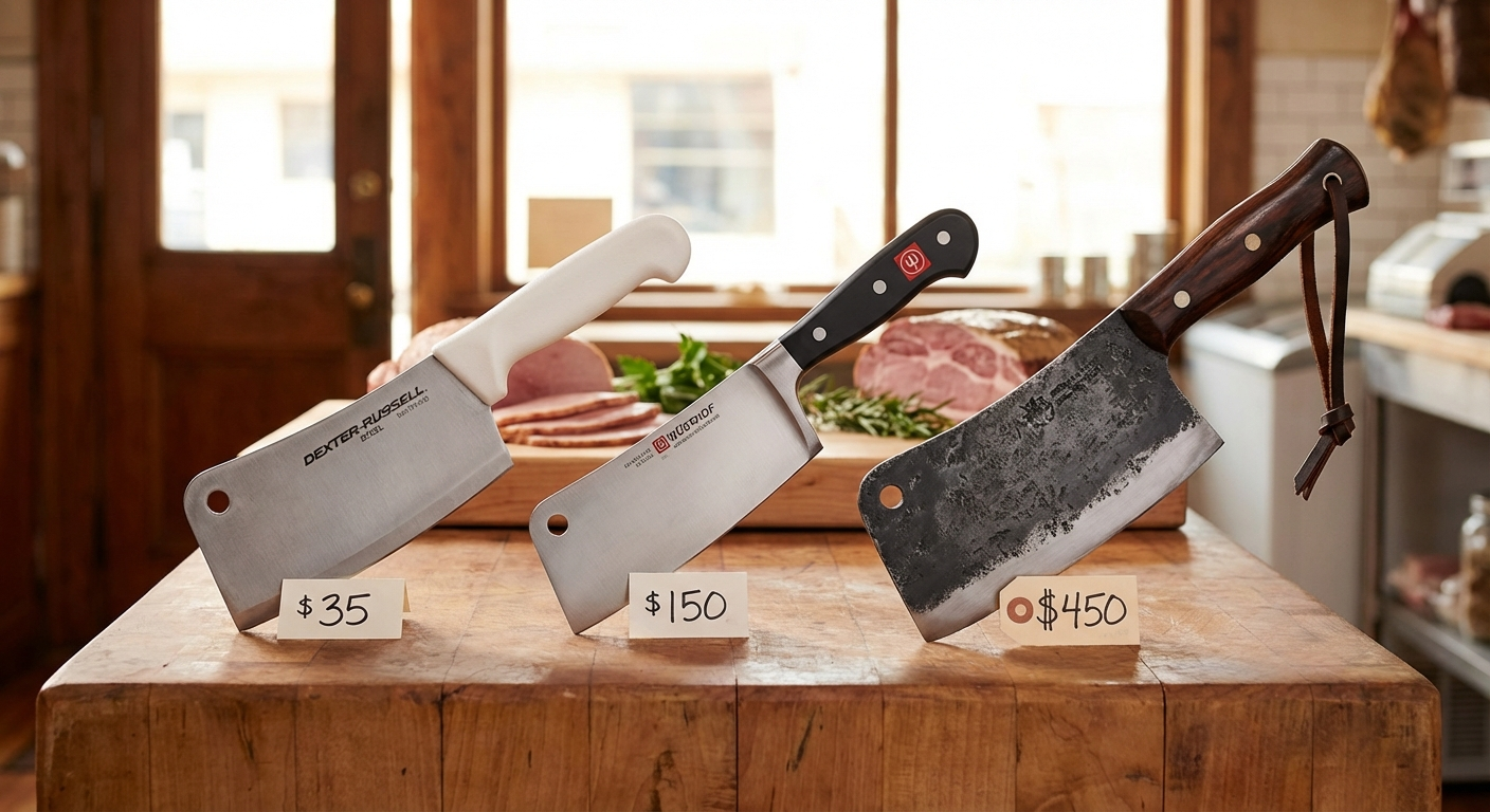 For most home butchers, a $40-50 budget cleaver from Dexter-Russell or Winco will serve you perfectly for years. If you're doing high-volume work or want better ergonomics, spending $100-120 on a mid-range Wüsthof or Victorinox is worthwhile. Premium cleavers ($200+) are beautiful tools but offer minimal performance gains—buy them if you appreciate fine craftsmanship, not if you're chasing better results.